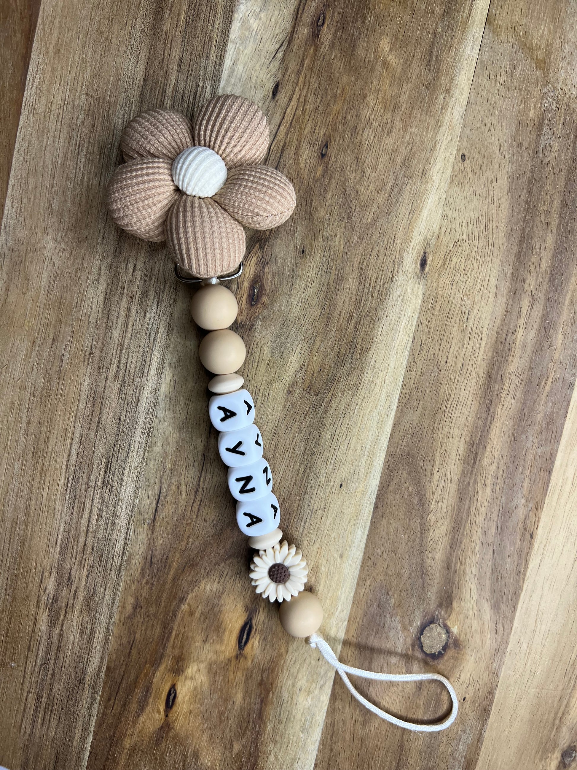 composée de perles en silicone alimentaire et de perles en bois de hêtre non traité.