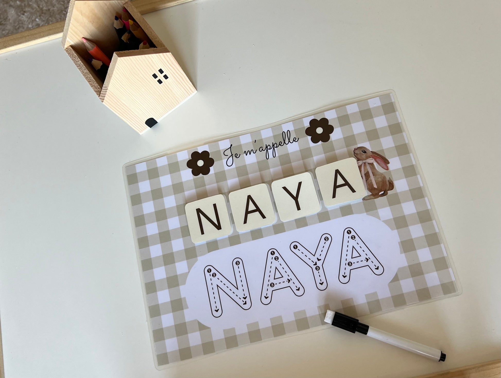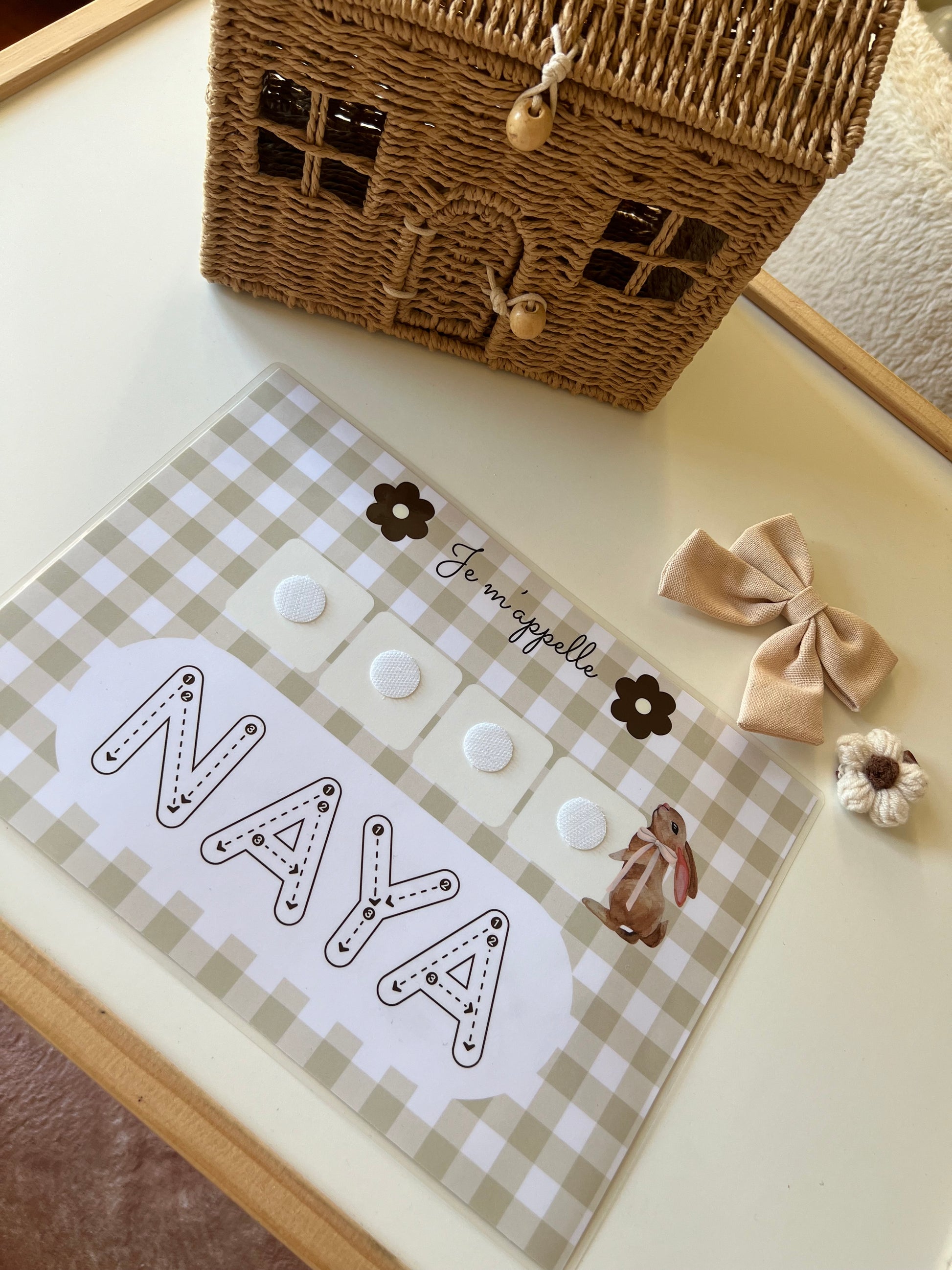 Affiche j’apprend mon prénom Vichy beige